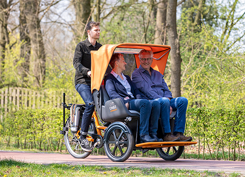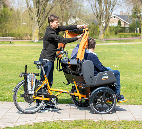 With a canopy for your Chat rickshaw bike, you can provide passengers with better comfort and protection in different weather conditions. The canopy partially shields against both sun and rain and makes it possible to use the bike in a variety of weather conditions – all year round.