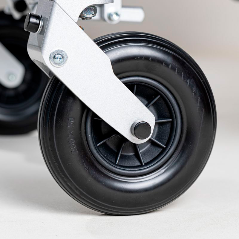 De 8″ forhjul med luft giver en blød og behagelig kørsel. Luftdækkene hjælper med at tage ujævnheder i underlaget og giver en mere komfortabel oplevelse.