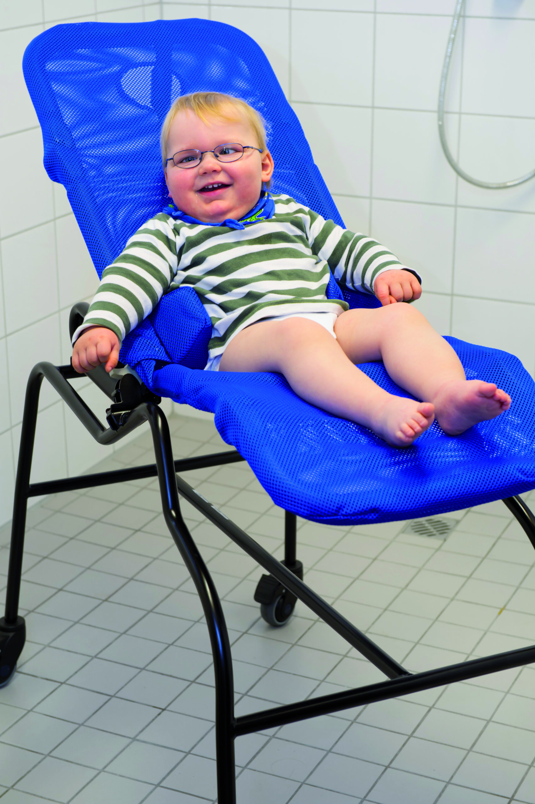 Basti badestol er udviklet til at gøre badet mere komfortabelt, sikkert og vandbesparende. Det vinkelregulerbare hoved stykke kan nemt klappes ned, så der ikke løber vand i øjnene, og ryglænet kan indstilles trinløst fra 90° til 180°. Sammen med den justerbare knæ vinkel og den fleksible underbensstøtte, der kan vippes mellem 0° og 90°, sikres en afslappet og ergonomisk sidde- eller liggestilling. For ekstra stabilitet kan sædet udstyres med en valgfri bækkenfordybning med justerbar bækkenkant, som støtter og positionerer kroppen optimalt. Brystsele og højde- samt breddeindstillelige hovedstøttepuder bidrager til både sikkerhed og komfort. Betjeningen er enkel, da ryglænet kan justeres med én hånd under brugen, og i størrelse 4 sker indstillingen via robuste rustfri justerbart låseled. Den lave sædehøjde gør det muligt at sidde dybt i badekarret, hvilket reducerer vandforbruget betydeligt. Stolen kan kombineres med forskellige understel, blandt andet til brug i bruseniche, og betrækket kan nemt tages af og vaskes ved 30 °C. Materialerne er hudvenlige og udviklet til at forebygge trykmærker, så stolen kan anvendes både i badeværelset, ved stranden eller ved havet med samme grad af komfort og hygiejne.