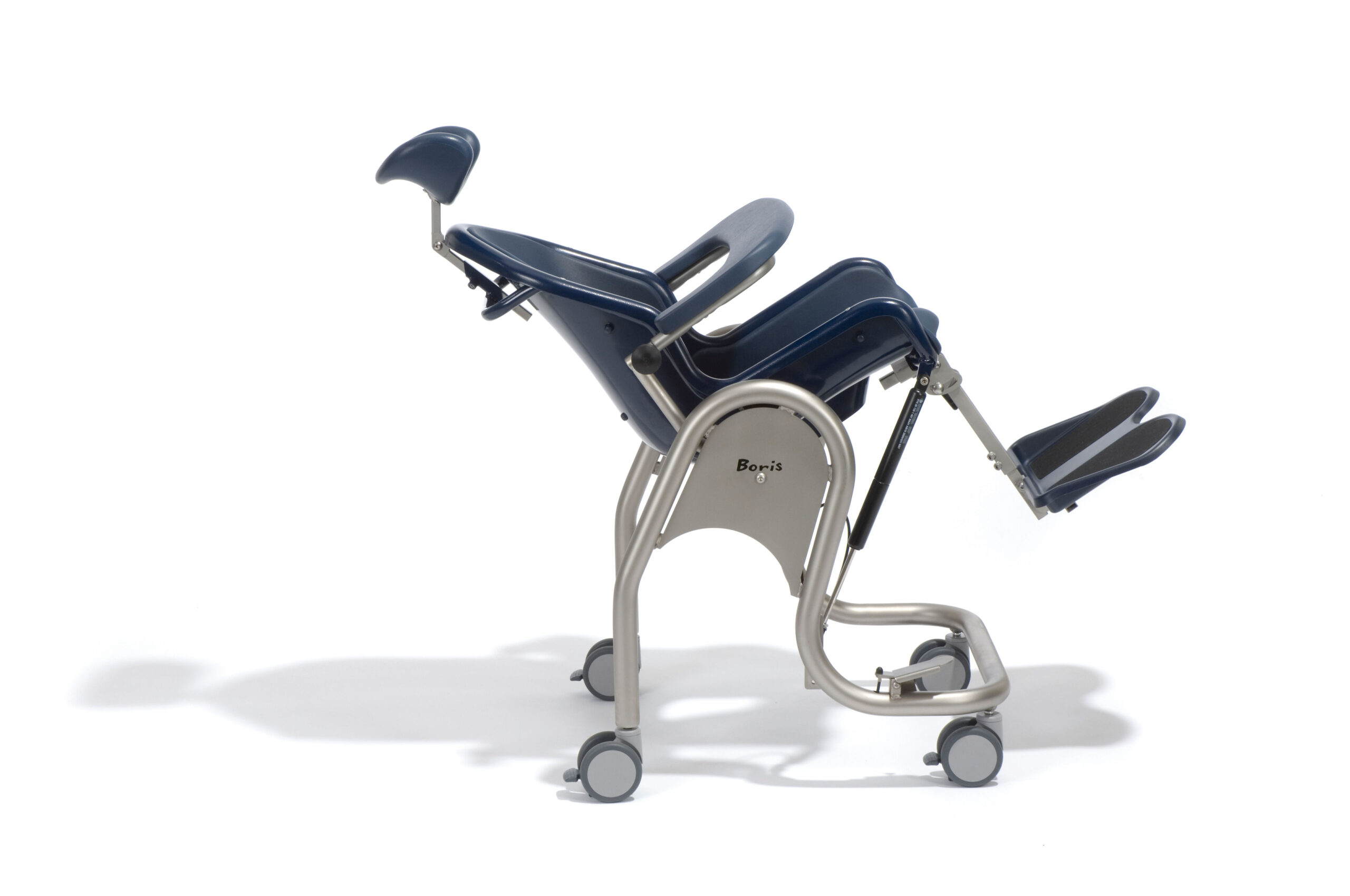 Uanset om det er tid til tandbørstning eller et bad, kan Boris’ sædevinkel tilpasses enhver situation. Det anatomisk formede sædeplade giver optimal støtte, stabiliserer overkroppen og kan justeres i højden. Ekstra komfort opnås med aftagelige og nemt rengørbarere indlægspuder, som gør det lettere at sidde korrekt uden trykpunkter. Konstruktionen i robust materiale sikrer lang holdbarhed, så både barnet og forældrene får glæde af Boris i mange år. Stolen fås i fem størrelser og kan bære op til 150 kg. Sædet er anatomisk udformet og giver god støtte i bækkenområdet, hvilket stabiliserer overkroppen. Understellet i rustfrit stål sikrer lang levetid og stabilitet. Med fodpedalet kan sædet trinløst justeres fra (-)5° til 30°, så det passer til forskellige aktiviteter. Indlægspuderne forebygger trykpunkter og kan tages ud efter behov, mens fodstøtten nemt kan klappes op ved ind- og udstigning. Bordet med polstret armstøtte og de svingbare armstøtter giver yderligere støtte og komfort. Kropstøtten kan justeres både i højde og vinkel, så den passer til individuelle behov. Boris kan desuden bruges som fritstående toiletsæde, og i størrelserne 2–4 er der mulighed for en større hygiejneåbning, hvilket giver ekstra fleksibilitet.