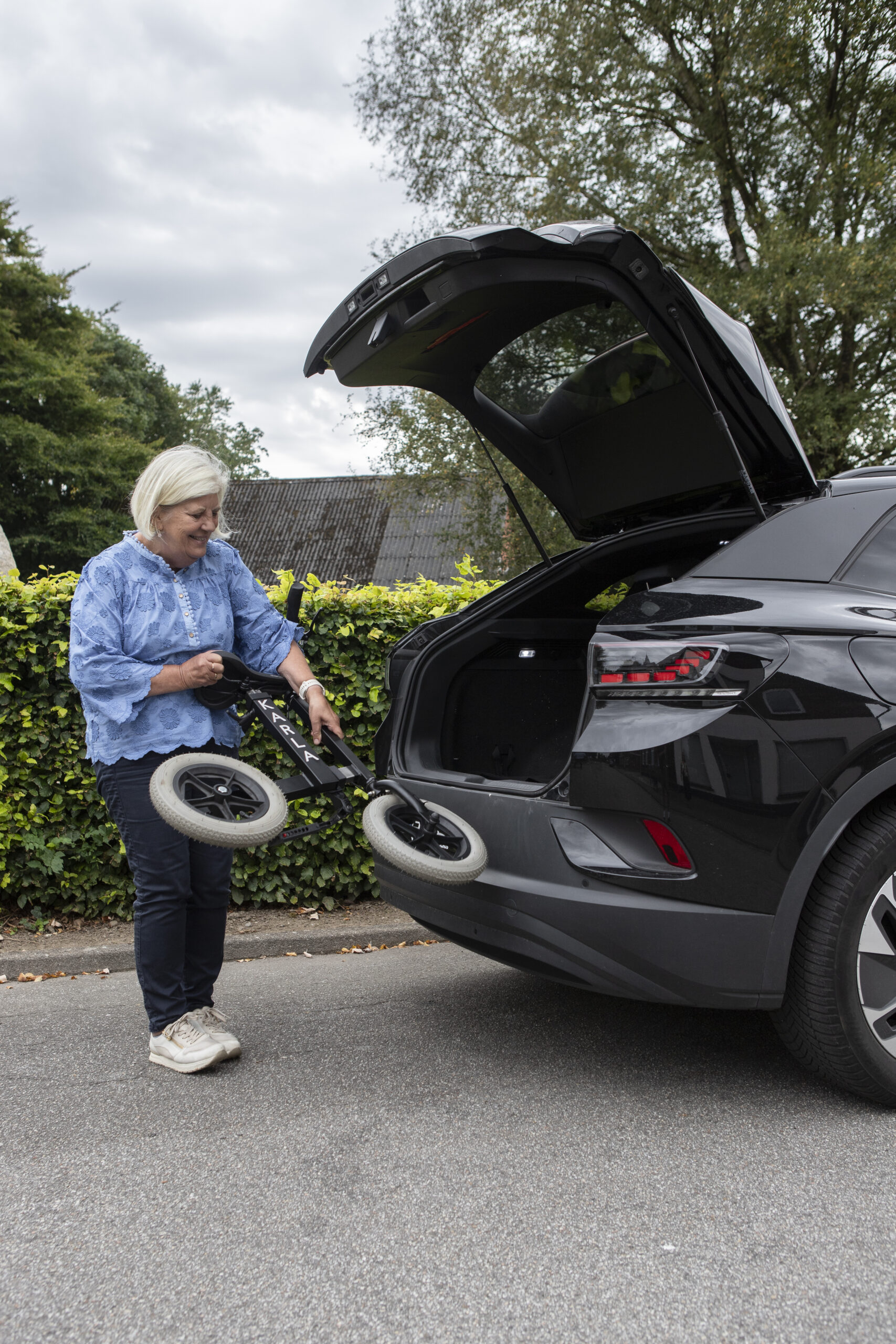 Karla er en let, fleksibel og transportvenlig gåcykel, der giver dig tryghed og frihed til at bevæge dig længere og mere komfortabelt. Det justerbare teleskopstel gør det nemt at tilpasse Karla til din krop og dine behov, og den kan hurtigt skubbes sammen, så du let kan tage den med i bil, bus eller tog.