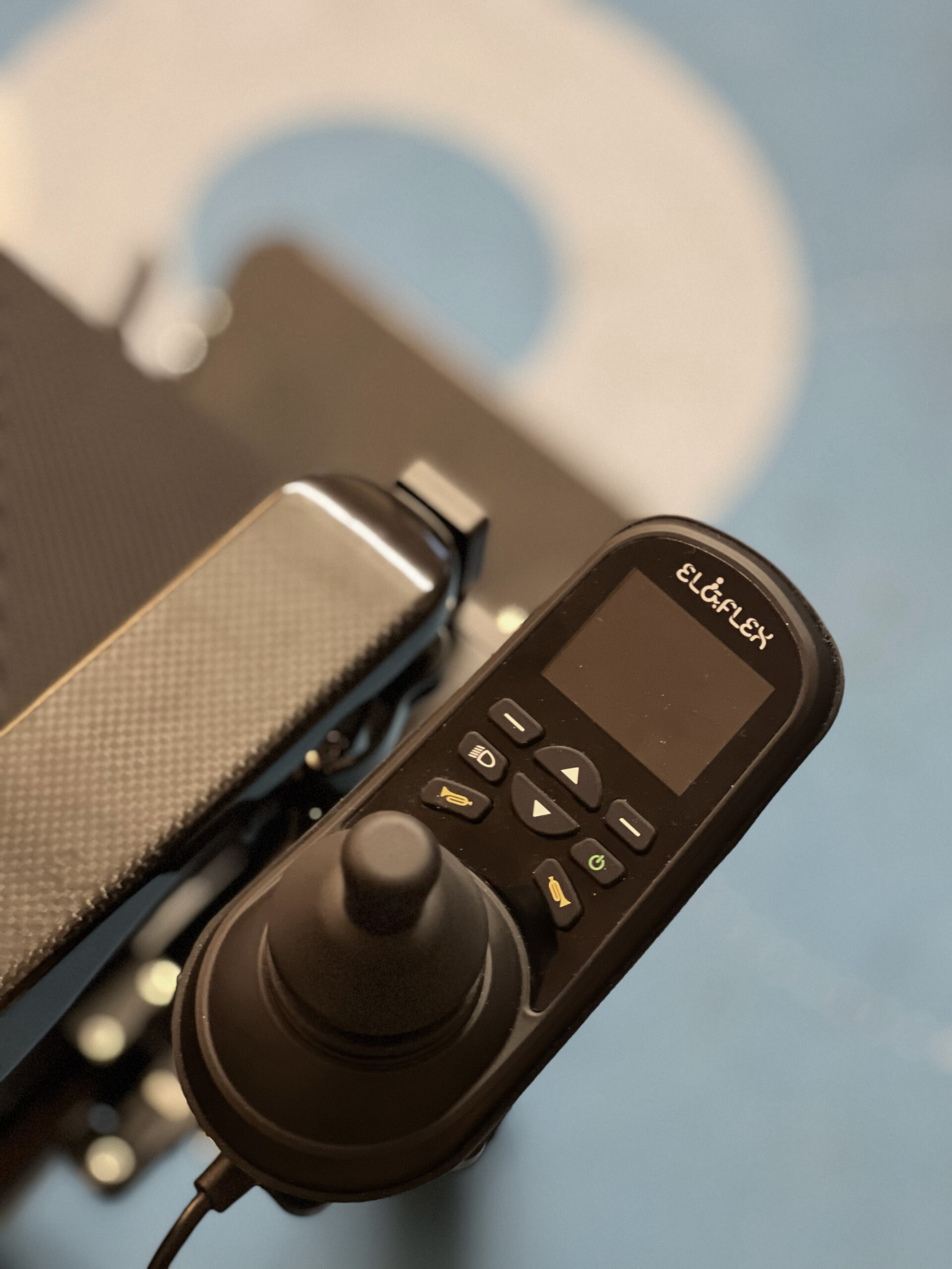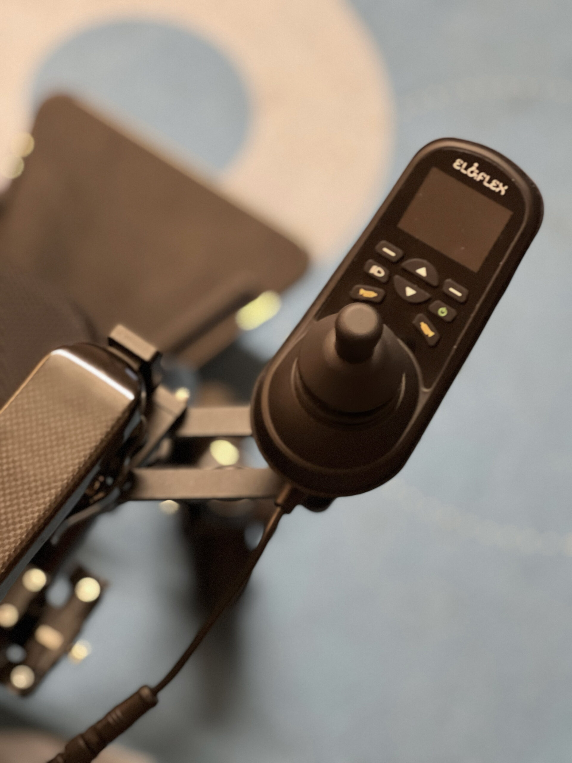Løsningen er særligt praktisk, når du skal helt tæt på et bord, skrivebord eller spisebord, uden at joysticket er i vejen. Samtidig bevarer du styringen – også når du sidder tæt ved bordkanten.